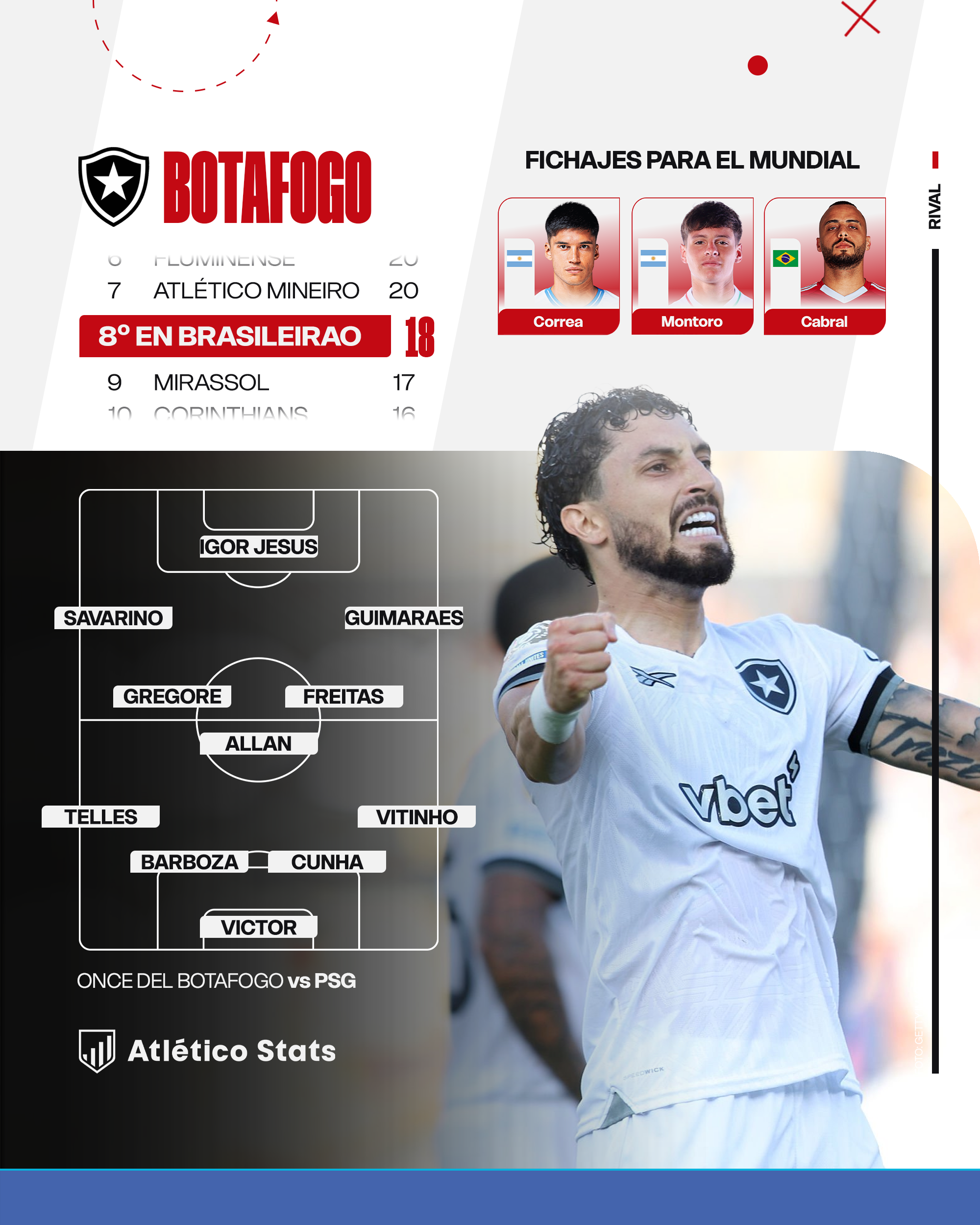 Como suele ocurrir con los equipos que destacan fuera de Europa, el Botafogo campeón fue desmantelado casi por completo. Al igual que su entrenador, Artur Jorge, también se marcharon sus principales figuras: Thiago Almada (alguna vez en la órbita rojiblanca), Luiz Henrique (ex del Betis y nombrado mejor jugador del año en Sudamérica), Tiquinho y Junior Santos, entre otros.