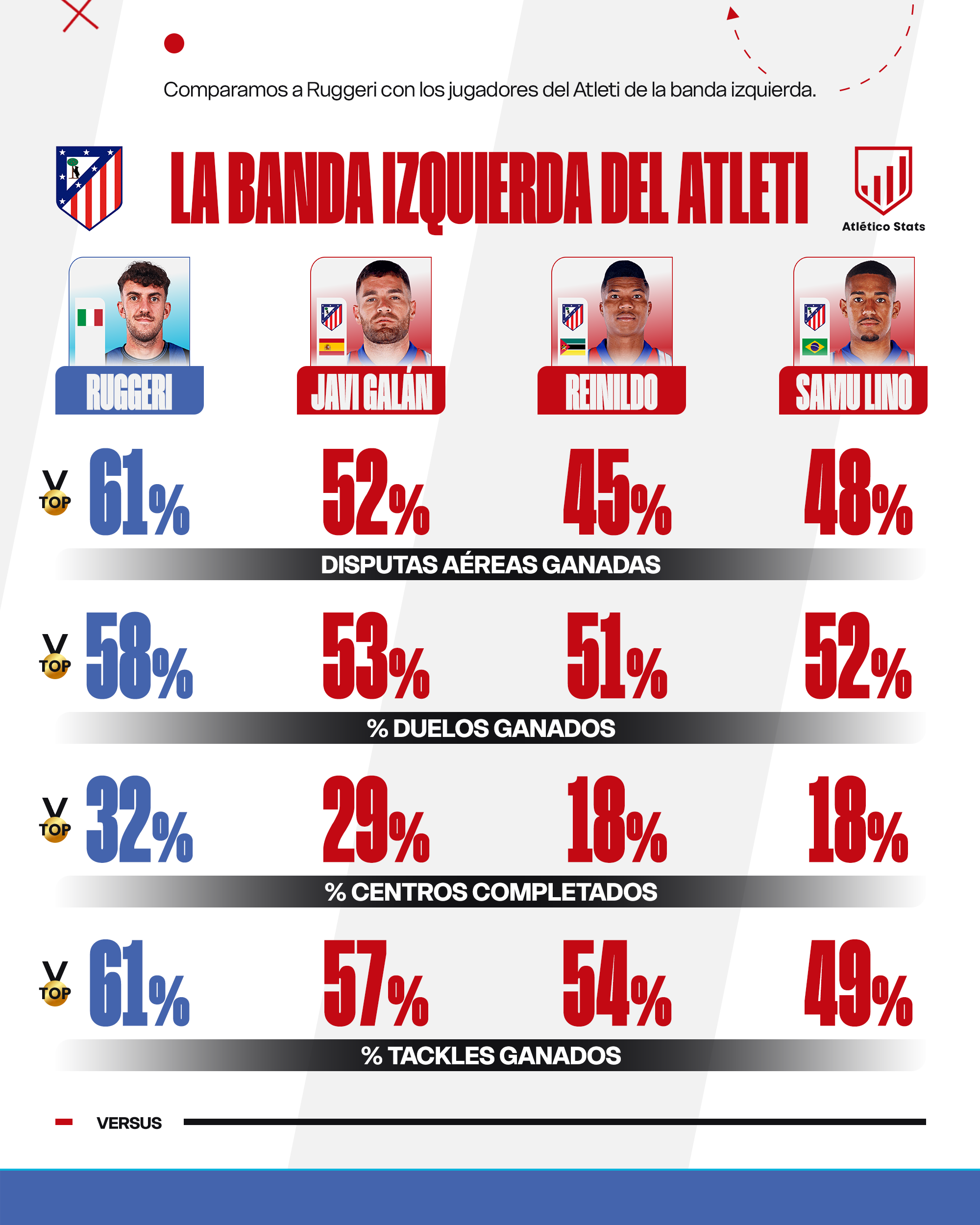 Ruggeri, quizá, es quien más tiempo necesite, aunque es posible que no disponga de él debido a las carencias actuales en el lateral izquierdo. Llega desde un contexto muy particular como el de la Atalanta de Gasperini. Aunque Simeone, en principio, le permitirá cierta libertad ofensiva, en fase defensiva se encontrará con diferencias notables respecto a su anterior técnico. ¿Le veremos actuar, además de lateral clásico, como central exterior en fase ofensiva, al estilo de lo que ha hecho Llorente en la derecha?