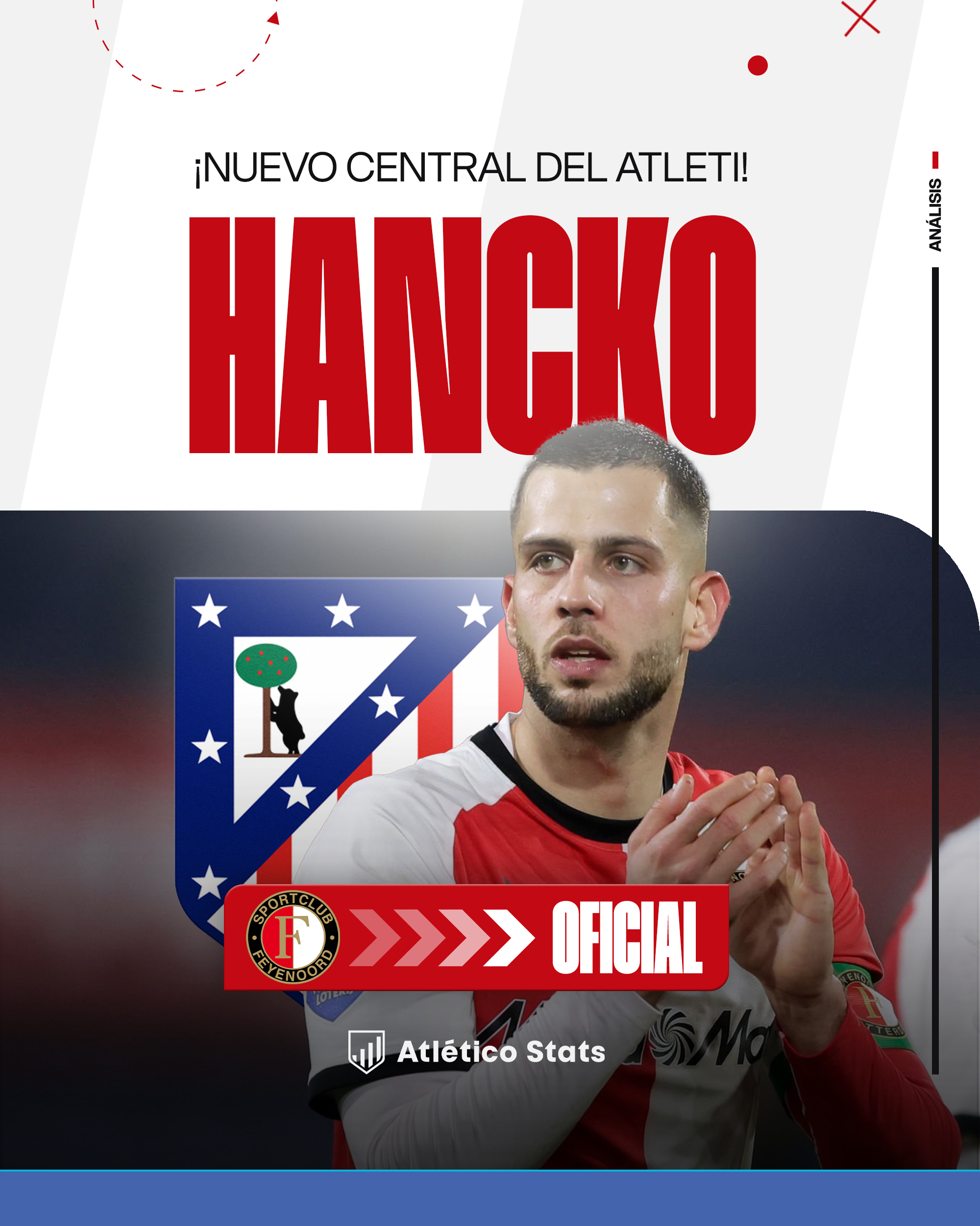Hancko ya estuvo HECHO por el Atleti hace unas semanas La cronología del fichaje fue esta. El Atleti llegó a tener hecha la incorporación del capitán del Feyenoord. El Al Nassr se entrometió a horas de hacerse oficial ofreciendo una cantidad importante y se cayó la operación. Esta es la clave por la que ha sido tan rápido su fichaje ahora, ya que estuvo todo acordado hace semanas. Por aclararlo, Hancko fue una de las principales opciones de la dirección deportiva desde el principio.