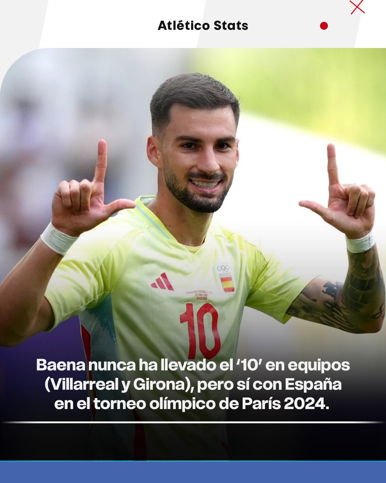 A pesar de no llevarlo ni en el Girona ni en el Villarreal, sus dos equipos en el fútbol de élite antes de dar un paso hacia adelante en su carrera, Baena ya tiene la experiencia de cargar con el peso del ‘10’ en su espalda. Lo hizo con España en los Juegos Olímpicos de París 2024, colgándose la medalla de oro en el Parque de los Príncipes frente a la anfitriona y haciendo uno de los cinco tantos del combinado español, compartiendo plantilla con Marc Pubill y Pablo Barrios, sus nuevos compañeros de vestuario.