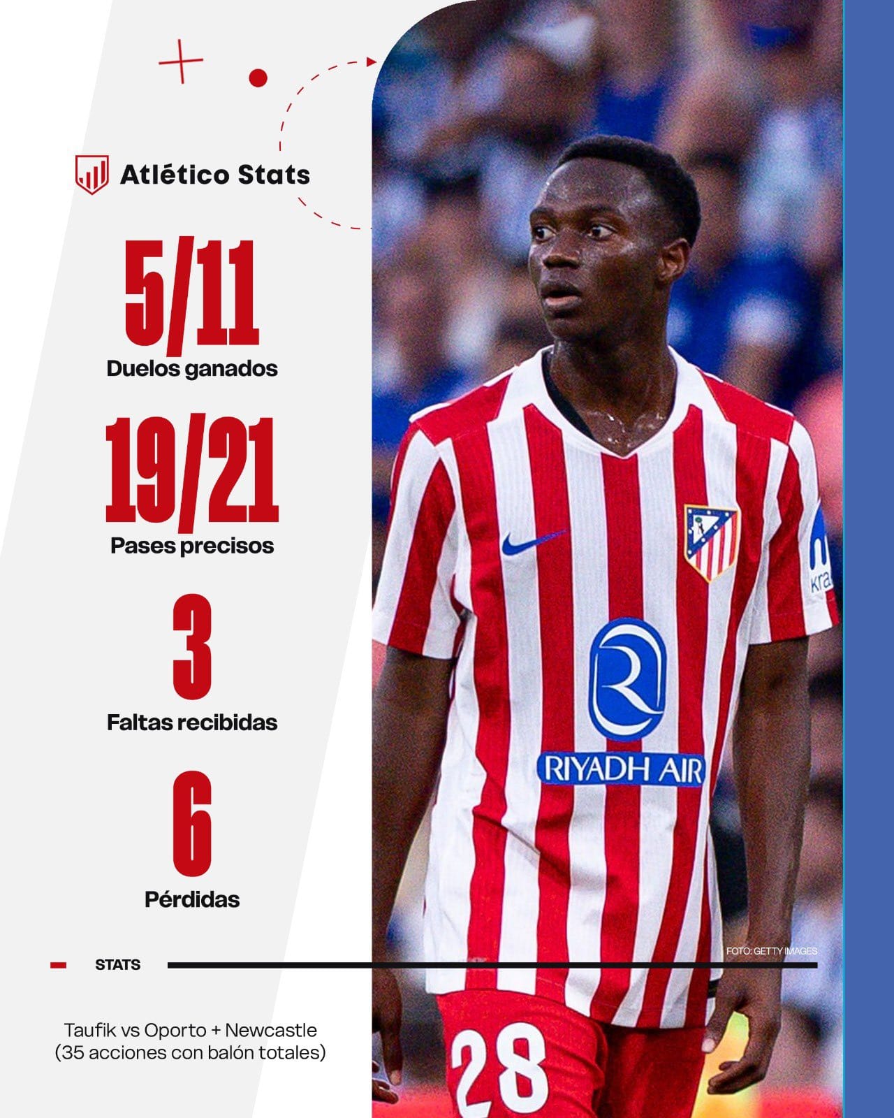 Y por último, creo que es justo destacar a Taufik. En esta pretemporada hemos hablado más de Jano, pero hoy Taufik ha estado brillante: ganando duelos, intimidando en la presión, con mejor toma de decisiones al pase e incluso cerca de marcar.