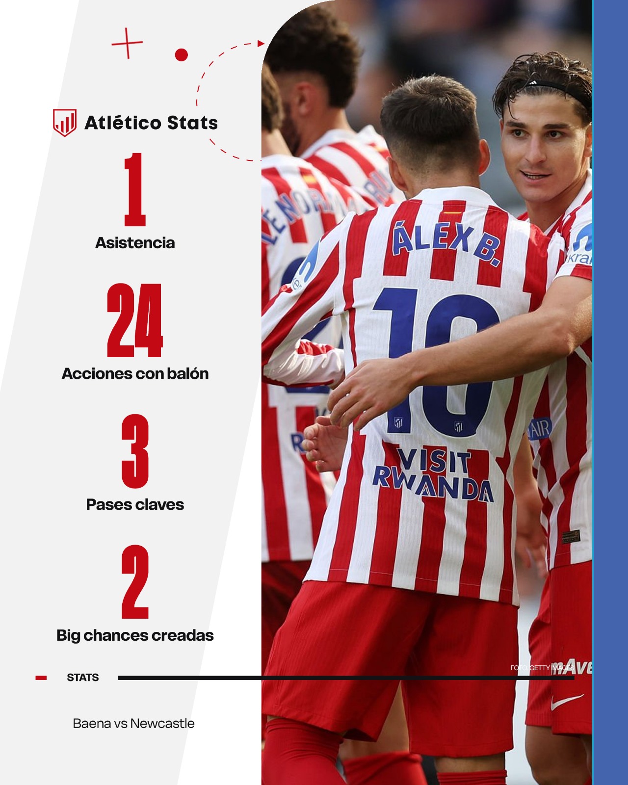 Si contra el Porto vimos a un equipo proactivo en la presión, pero solo en los primeros minutos, hoy Simeone ha conseguido que esto fuese una constante durante todo el partido. Especialmente cuando el Newcastle decidía reiniciar para darle otra estructura a su jugada ofensiva, el Atleti entendía que era el momento de convertir el bloque medio en un bloque alto, obligando al rival a ser más directo. Esto facilitaba la recuperación de la posesión y, una vez con el balón a favor, permitía que estuviese ya ubicados en campo contrario de una manera que ayudaba a saltarse fases y conectar antes con los jugadores encargados de marcar diferencias.