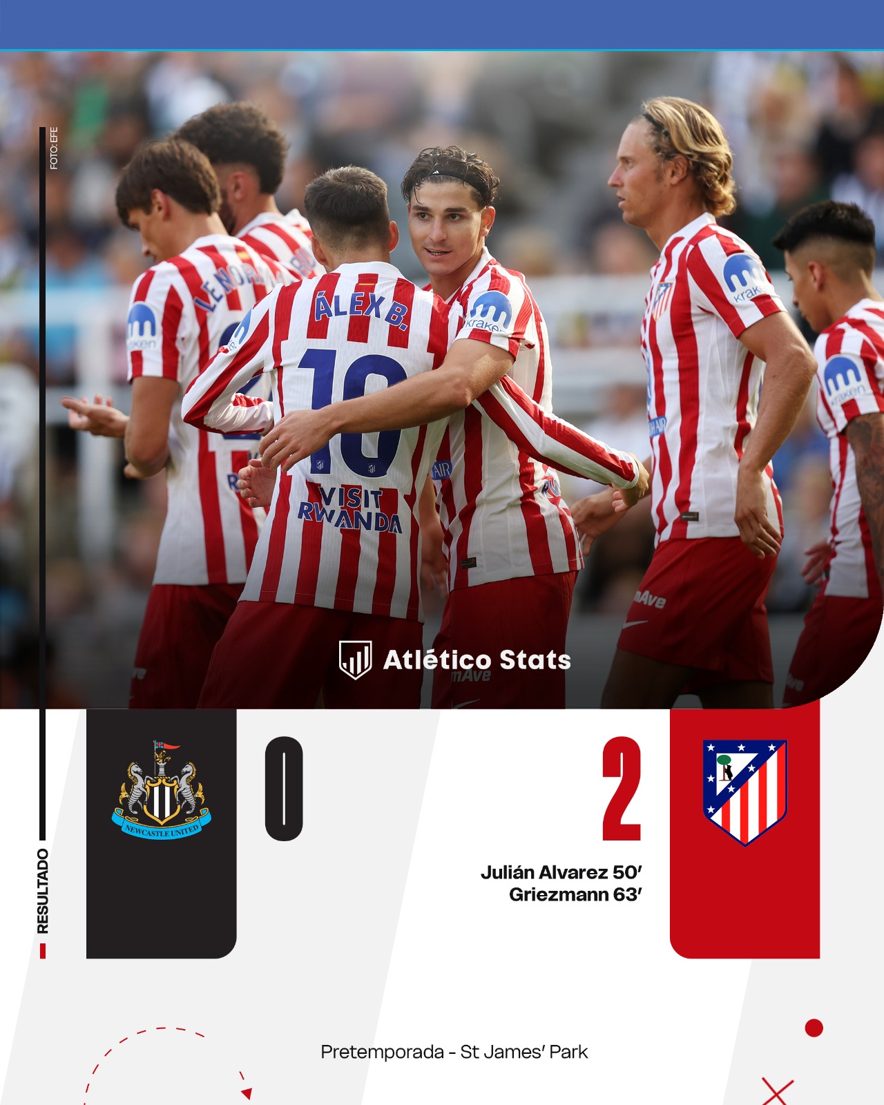Convincente. Posiblemente sea un buen adjetivo para definir las sensaciones que ha dejado el Atlético de Madrid en su último amistoso de esta pretemporada. No era un rival precisamente fácil el Newcastle United, equipo de Champions, que además ha podido realizar una pretemporada con más pruebas (seis amistosos).