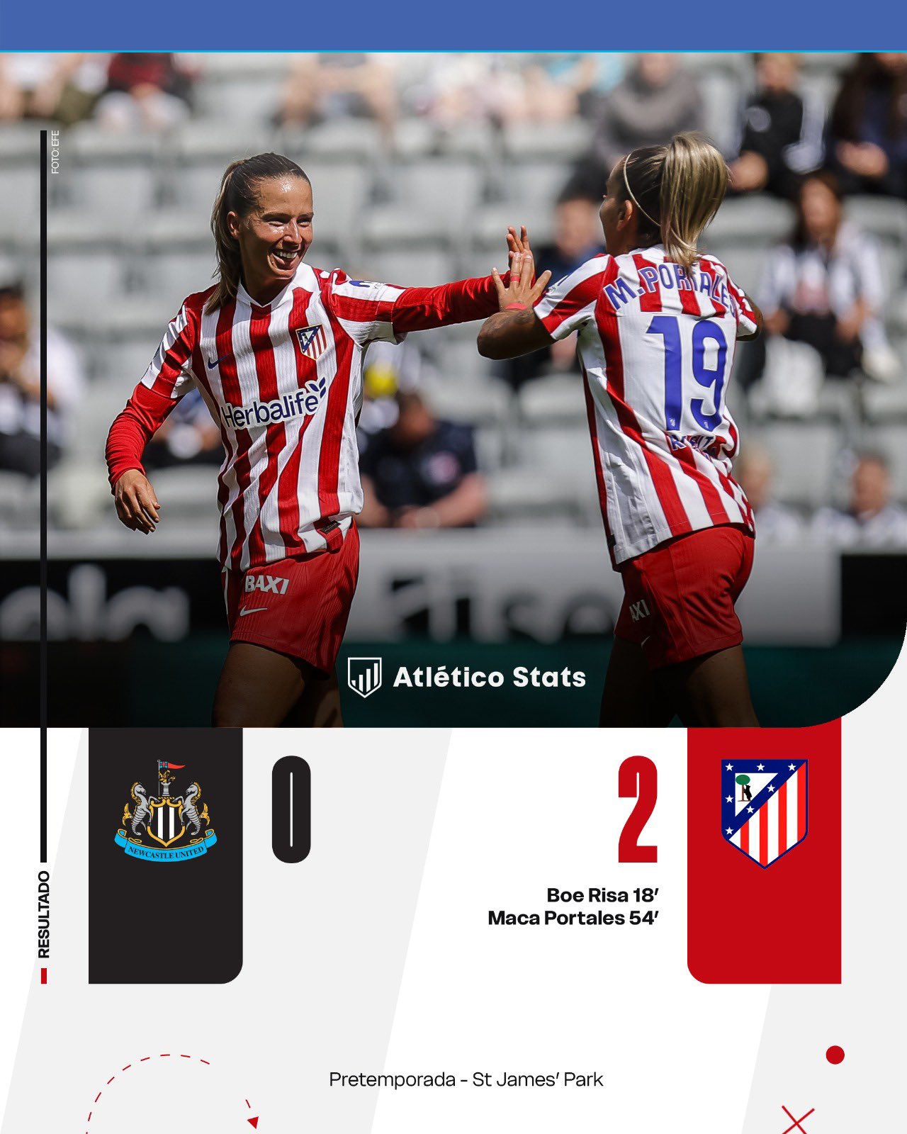 El conjunto rojiblanco logró vencer cómodamente al Newcastle (0-2), pero también con algún que otro sobresalto. Víctor Martín mostró algunas de sus cartas de cara a la próxima temporada -pese a la suplencia de Lola Gallardo en lugar de Patri Larqué- y ya contó en el once titular con Amaiur y Maca, esta última fue la autora del segundo tanto rojiblanco. La lata la abrió Vilde Bøe Risa cerca de los veinte minutos de juego.
