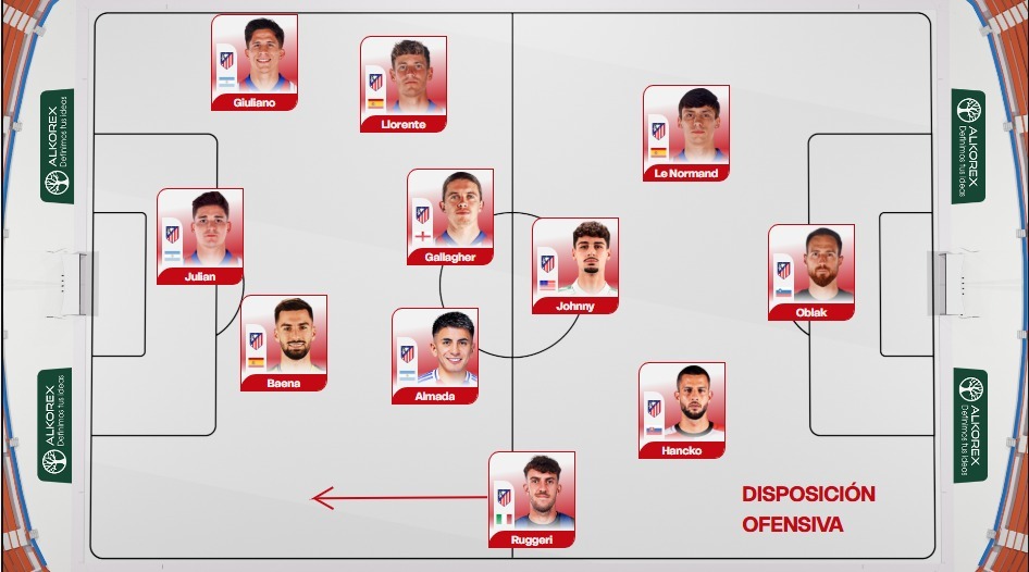 La primera parte hubo un rato en el que se jugo bien, donde se notaba un plan de juego que intentaba suplir las lagunas del equipo. Almada(sobretodo) y Baena(menos) bajaban al centro para mover el juego, y Gallagher jugaba mucho mas arriba. Llorente y Giuliano se hacian coberturas constantemente y Ruggeri llegaba a linea de fondo. Tambien se intenta presionar mas arriba y hay idea clara para sacar el balon jugado desde atras, aunque tengo muchos peros con estos dos puntos mas abajo. Parece que hay un plan a pesar de lo mal conformada que esta la plantilla para mi gusto. Lo malo, es que parece que solo existe ese plan y que no tenemos cintura para adaptarnos. Hemos pasado de cambiar 3 veces la formacion en una parte a intentar hacer lo mismo con jugadores completamente distintos.