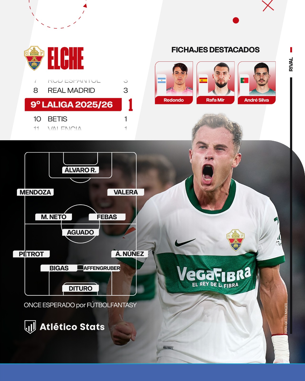 Más allá de lo colectivo, el Elche es un equipo que no se puede permitir tener una individualidad llamativa. Por eso, vamos a destacar a dos jugadores clave para que el equipo funcione.