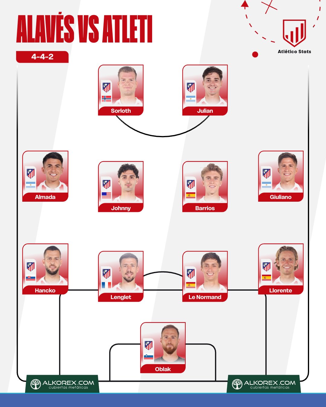 Si tiras 6 veces a puerta y una al palo y sólo entra una (como ayer); o nada menos que 24 veces a puerta entre los tres partidos (Espanyol, Eclhe y Alavés) y sólo entran tres, es que necesitas 8 disparos entre los tres palos para hacer cada gol. Mientras que tus rivales te hacen 4 goles con sólo 11 remates a puerta (un gol cada tres remates entre los tres palos), que son las cifras de, por ejemplo, ayer, Mallorca o Real Madrid, por ejemplo, las cifras de contundencia normales. El trabajo del Cholo es generarlas (y evitarlas), no meterlas. Coincido en que Julián no mejora a Sorloth (ni viceversa), y eso sí puede ser cosa del sistema, como lo de los balones parados.