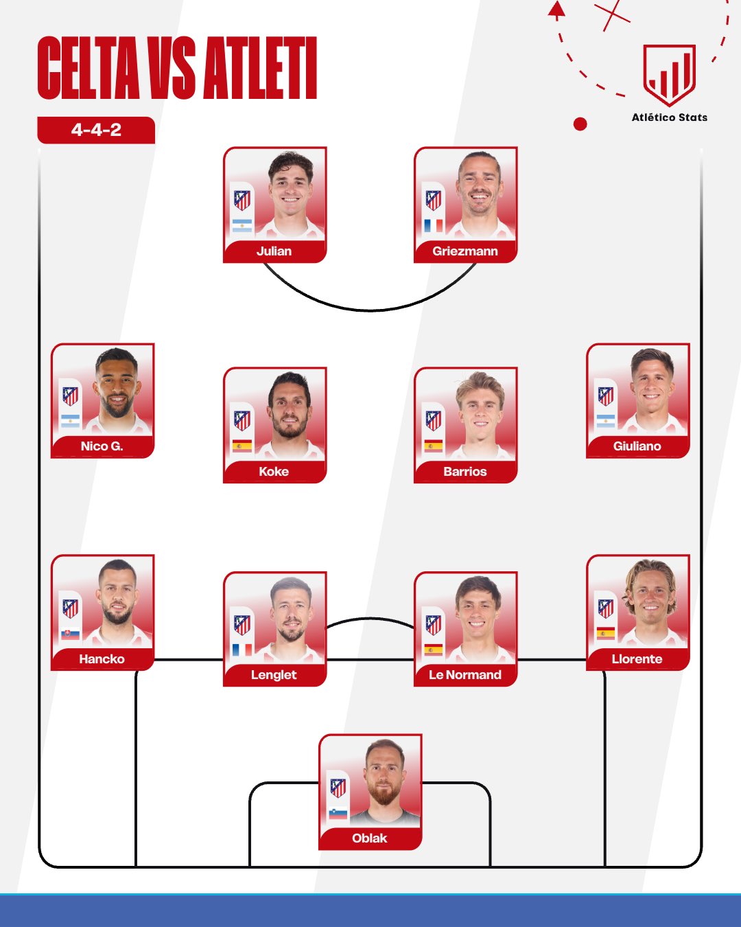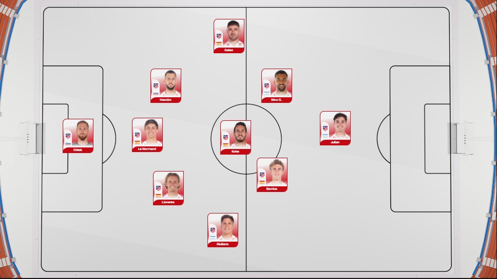 11 vs 11 Y EL ENÉSIMO DISPARO AL PIE Apostaba Simeone por el mismo once de la goleada ante el Madrid, salvo por la entrada de Griezmann en detrimento de Sorloth. Eso incluía el Lenglet + Hancko que, aunque a posteriori sea fácil criticarlo, tenía toda la lógica por lo que venía dándole al equipo la suma de ambos.