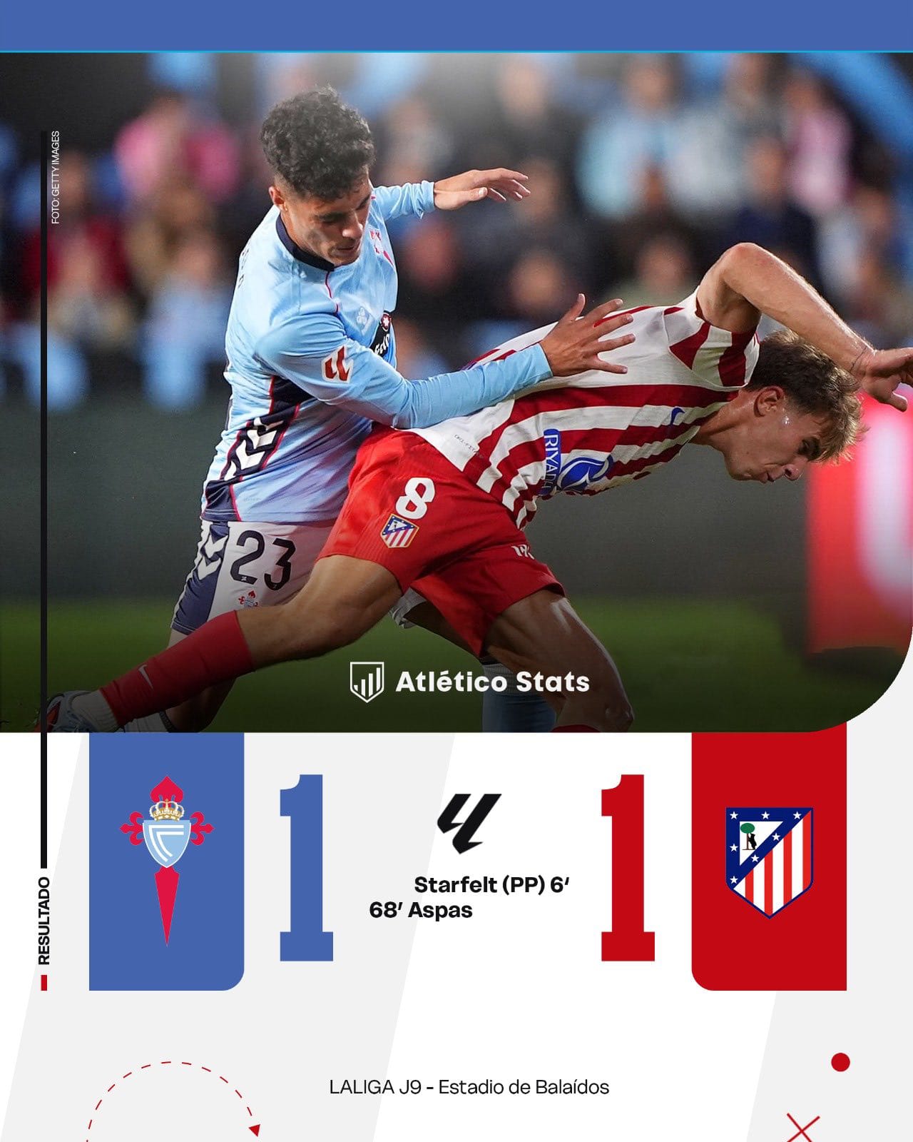 GOLPE QUE SUPUSO UN KO El gol de Iago Aspas fue un golpe del que el Atlético de Madrid no se repuso. Si ya la sensación era de ir al límite en lo físico , ese golpe anímico mató al conjunto rojiblanco. No debe ser fácil reponerse continuamente al recibir siempre un gol decisivo de la nada. Se puso el partido cuesta abajo para el Celta, con un Iago Aspas entendiendo de manera formidable el momento del partido —qué jugador—.