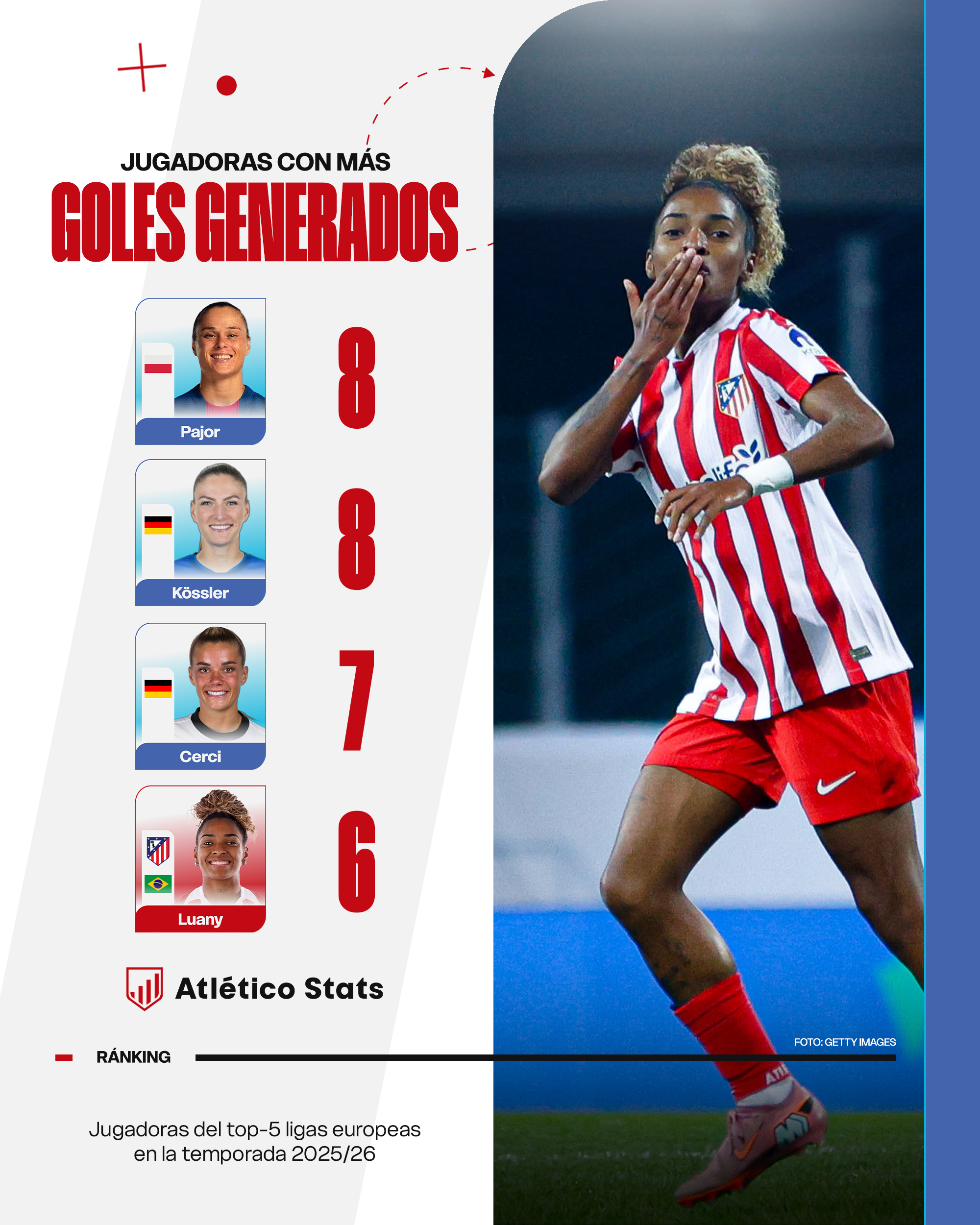 Su doblete ante el St. Pölten en el estreno de la competición europea, además de proporcionar una asistencia al mismo tiempo, no es más que la confirmación de una futbolista que ha dado un paso al frente en el liderazgo de las colchoneras, generando goles en tres de los últimos cuatro partidos oficiales. En ese sentido, ha marcado cinco dianas y ha dado una asistencia.