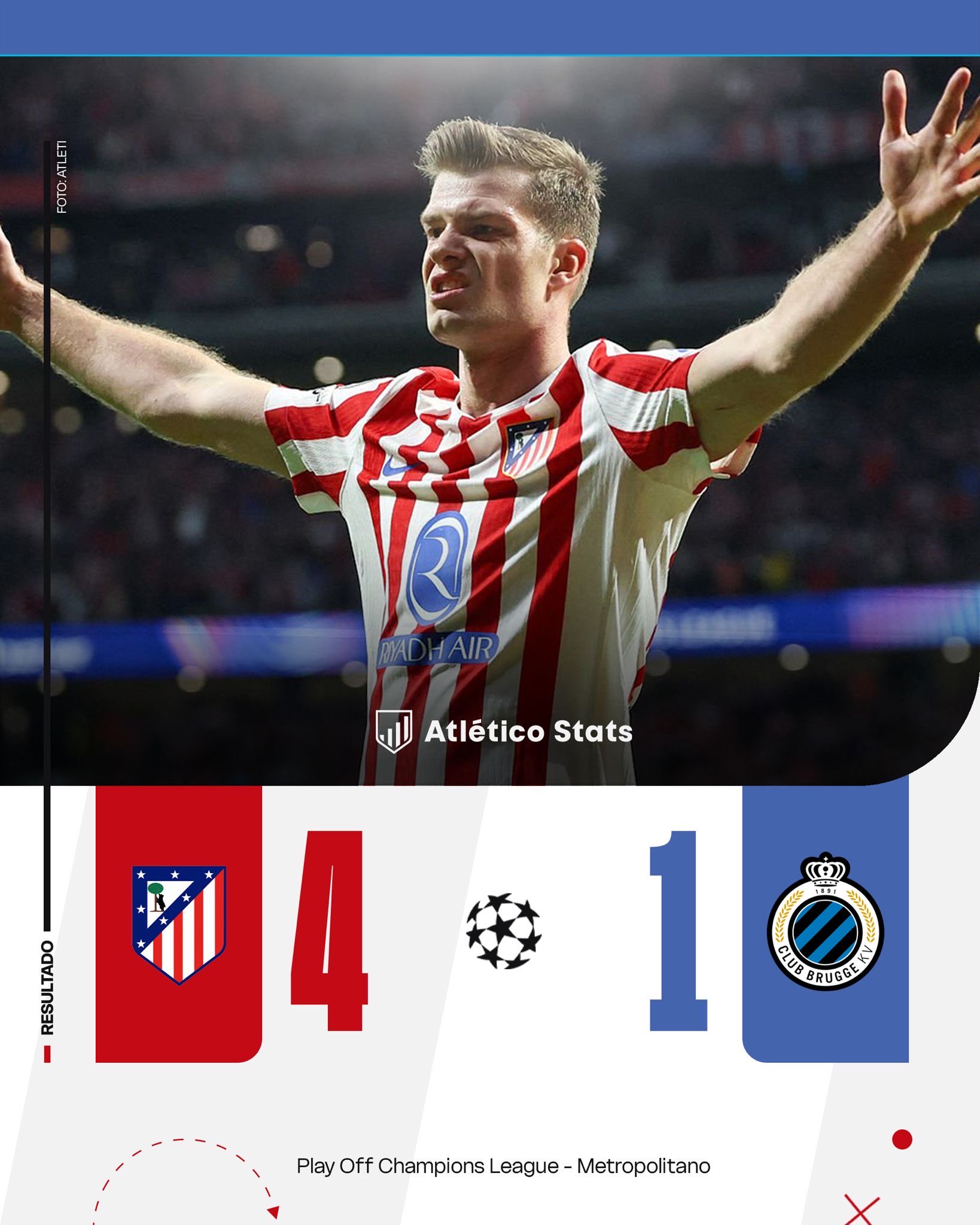 Otro partido más en el que, por curioso y contraproducente que pueda sonar siendo esto una crónica, no me queda otra que partir desde avisar que al Atlético de Madrid 25-26 no hay que entenderlo ; hay que aceptarlo , asumir el riesgo y disfrutarlo . Fíjense si es divertido el actual momento del equipo que, si hubiese que personificarlo en un jugador, quizás la elección más lógica fuese Ruggeri . Dicen que en las fiestas hay que aguantar... y el Atleti aguantó para acabar liderando una fiesta de las que se recuerdan. Todos queríamos «un ratito más»... pero es un placer saber que en breve lo habrá, porque este equipo está capacitado para volvernos locos... pero también para hacer grandes cosas en esta Champions League .