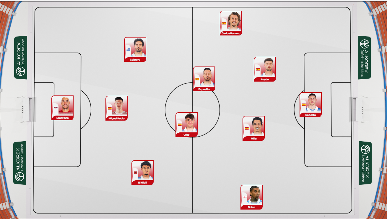 En fase ofensiva posiblemente Manolo apueste por una salida de tres, entre otras razones para estar mejor preparado ante una posible pérdida. Omar El Hilali es ideal para este plan, tanto por sus propias condiciones como por permitir que, en el lado izquierdo, se dé una asimetría completamente distinta: ahí es Carlos Romero, eminentemente ofensivo, quien aporta la amplitud y la profundidad.